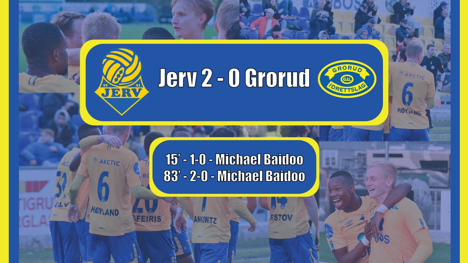 Jerv vinner 2-0 og klatrer opp til 10. plass på tabellen, Grorud blir værende på kvallikplass med to kamper igjen å spille.