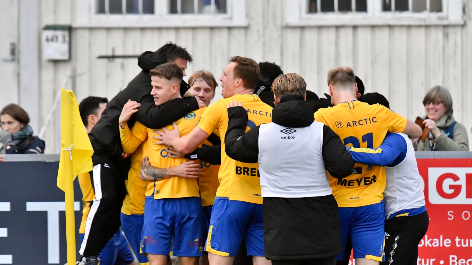 Så får Grorud en corner hvor Oscar Aga rager høyest og sender Grorud opp i ledelsen (!).