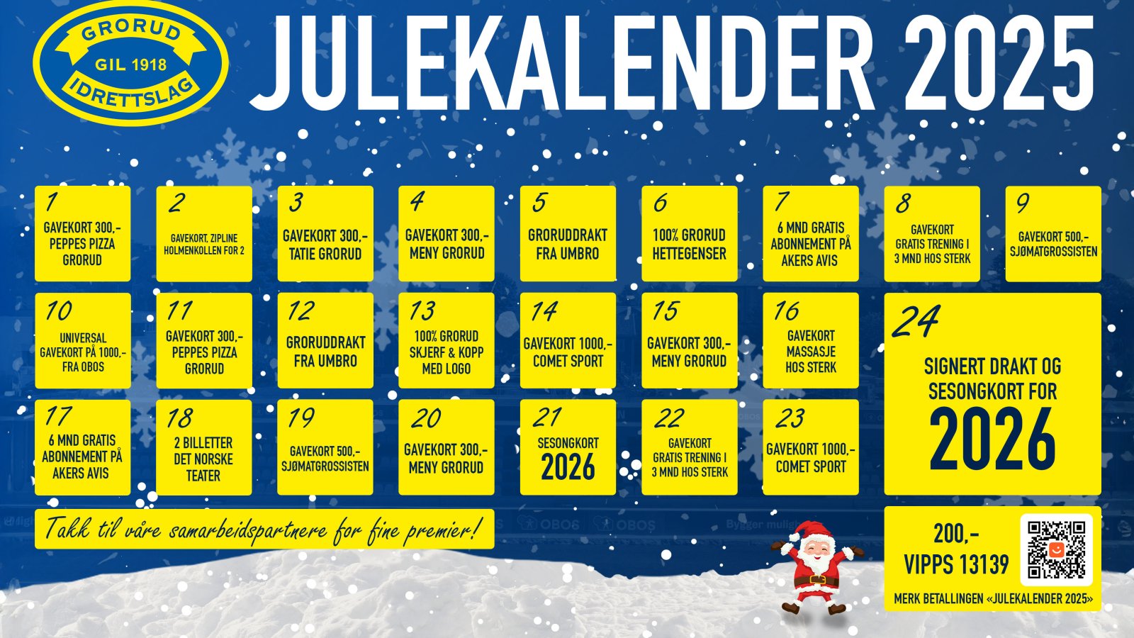 Hvis du har vunnet tar du kontakt på post@grorud1918.no for å avtale henting av premie.
