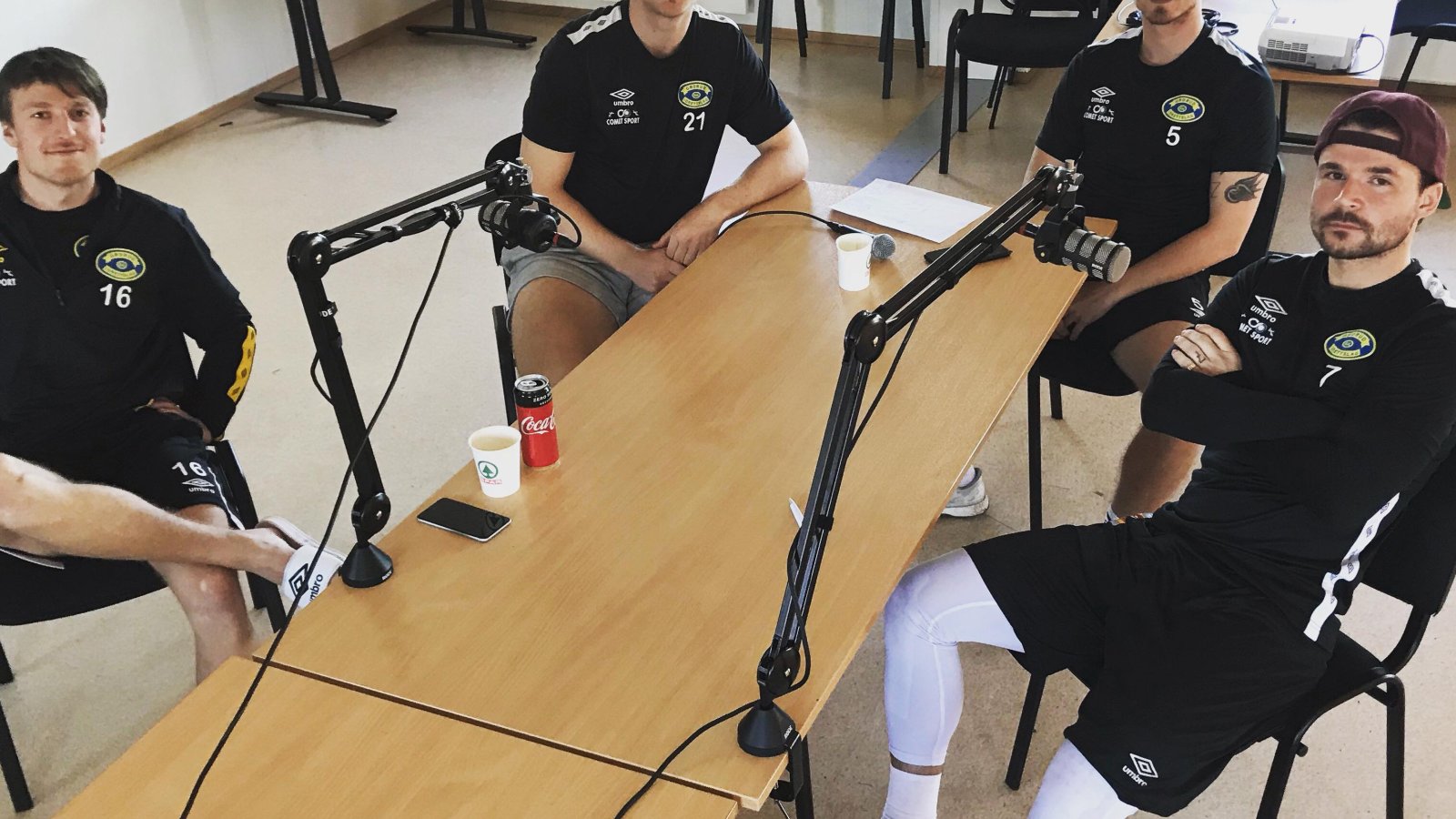 Denne gang er det spillerne på a-laget som sitter bak mikrofonene.