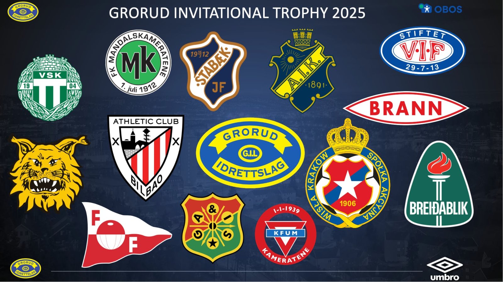 Grorud IL er stolte av å presentere det som blir den mest stjernespekkede utgaven av Grorud Invitational Trophy noensinne. I perioden 14.–17. august 2025 samler vi 24 lag fordelt på to klasser, seks nasjoner og noen av de største navnene i europeisk ungdomsfotball. Dette er turneringen for fremtidens stjerner – og de kommer til Grorud.