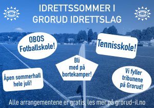 I sommer arrangerer Grorud Idrettslag en rekke med gratis aktiviteter for barn og unge fra 1. juli. Aktivitetene strekker seg ut over hele sommeren og oversikten finner du her